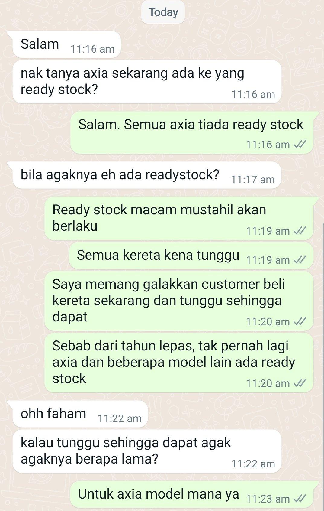 Nur Syahira On Twitter Bila Agaknya Ada Ready Stock Takpe Kak Saya Tunggu Kereta Ready Stock Kalau Macamtu Tunggu Ready Stock La Baru Beli Tiga Situasi Ni Yang Selalu Saya Jumpa Nak