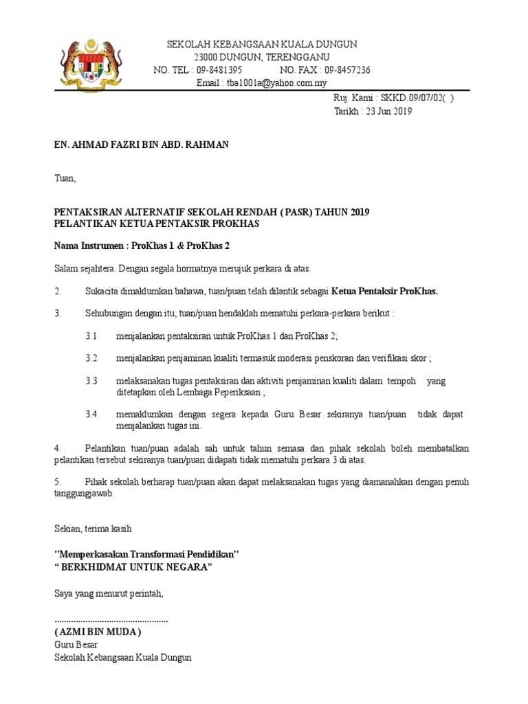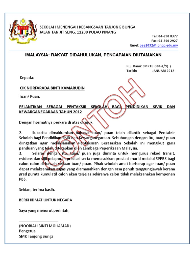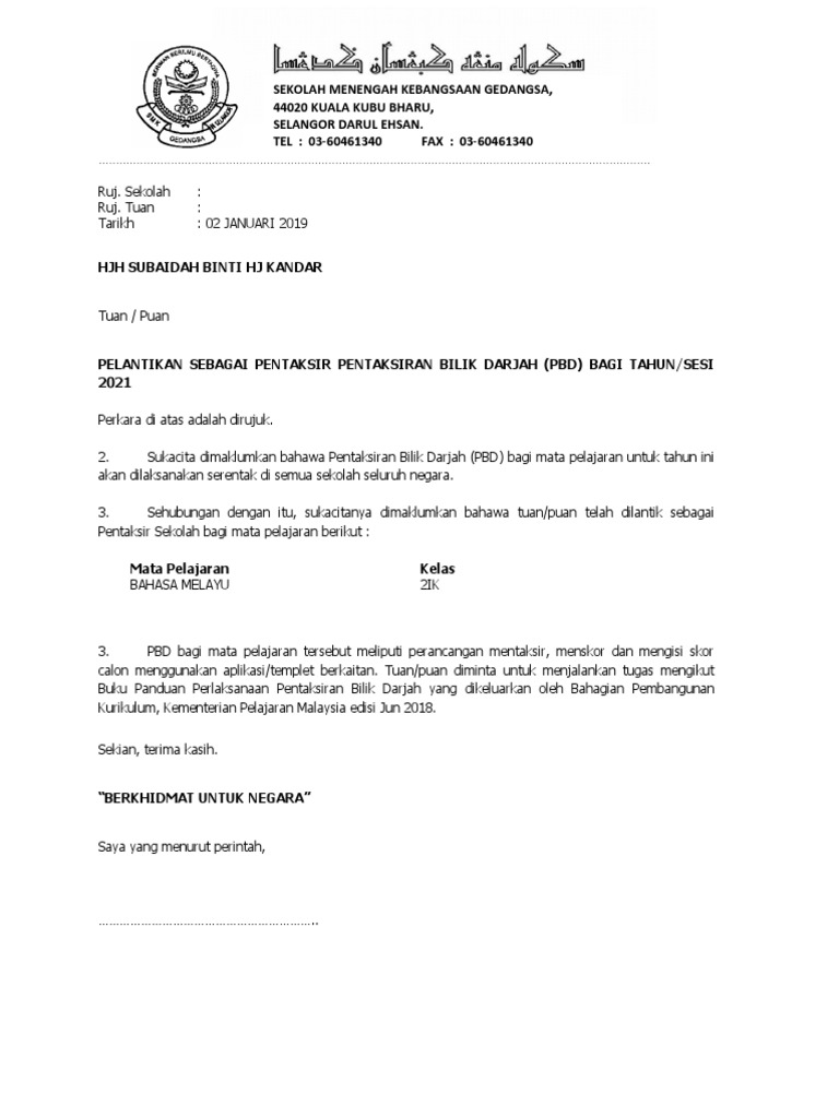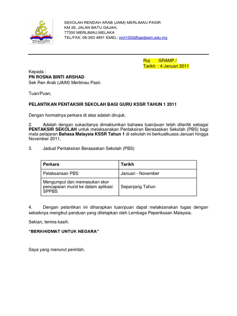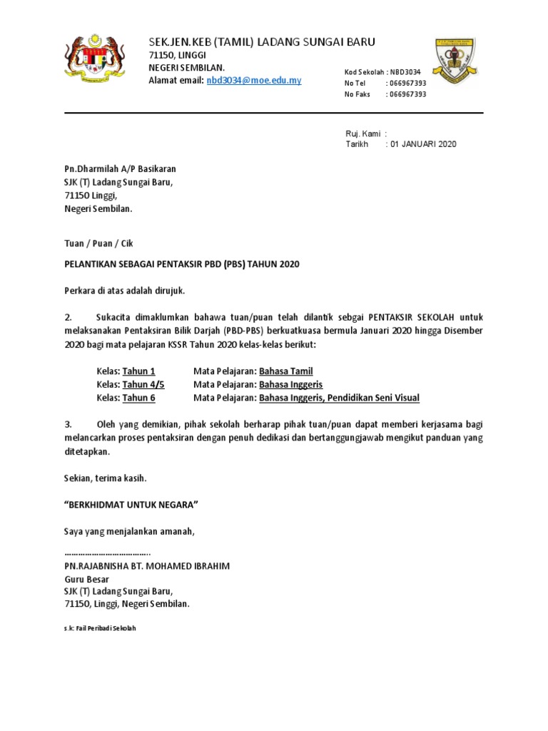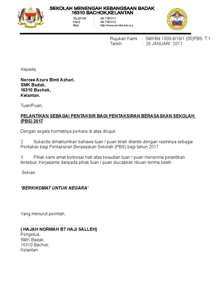 Surat Lantikan Pentaksir Pbs Contoh Pdf