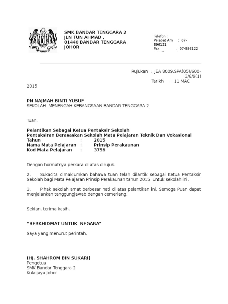 Surat Lantikan Ketua Pentaksir Sekolah 2012 Pdf